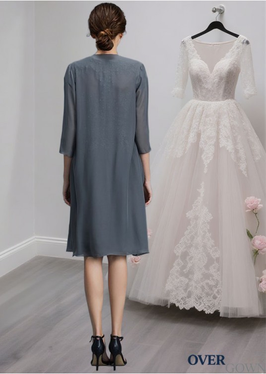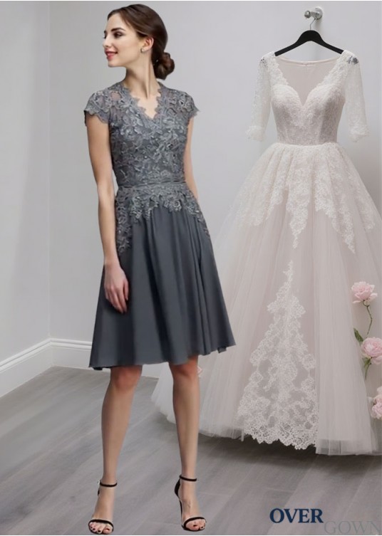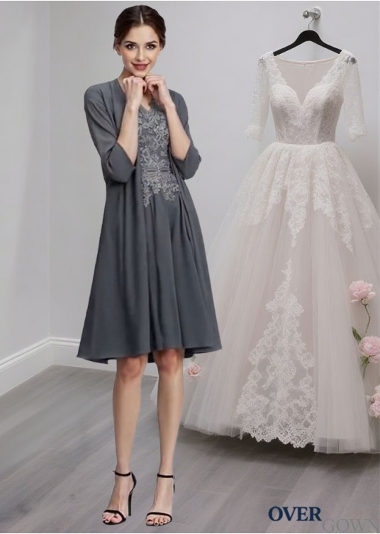 V-Neck Knee Length A-Line Mother of the Bride Dress with Applique