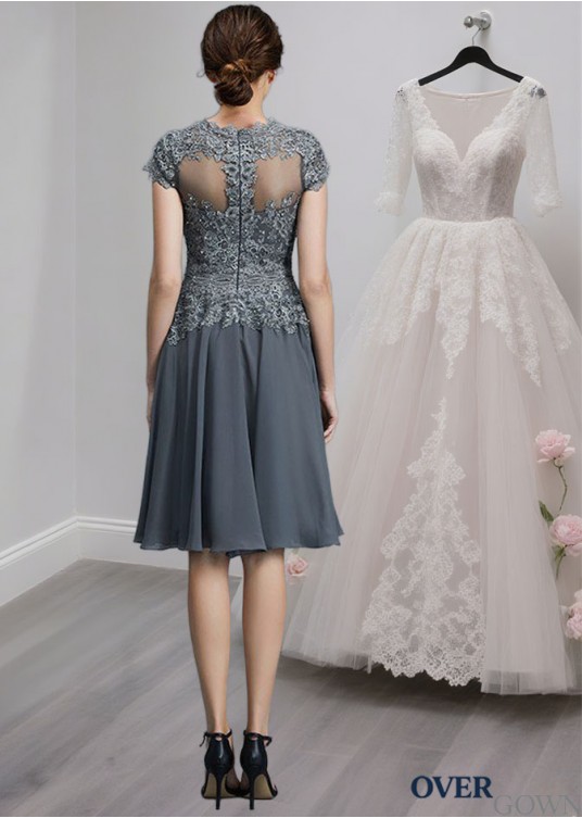 Short Jewel Neck Satin Knee Length Mother of the Bride Dresses