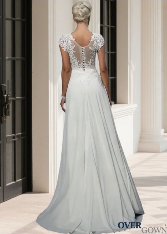 A-Line Lace Tulle Mini Wedding Dress with Cap Sleeves