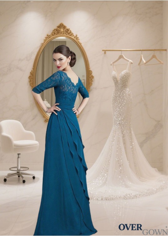 Chiffon V-Neck A-Line Mother of the Bride Dress with 1/2 Sleeves