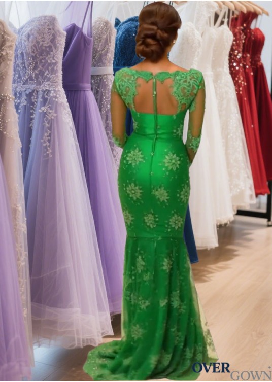 Green Mermaid Evening Gown – Long Sleeve Formal Dress with Applique
