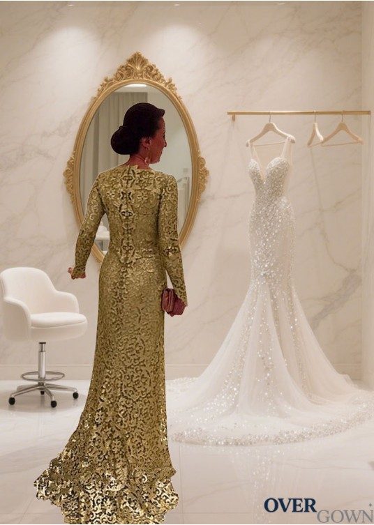 Lace Scoop Neckline Full Length Mother Dress – Sheath Evening Gowns