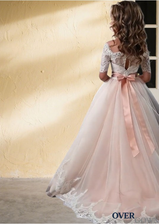 A-Line Flower Girl Dress in Tulle Lace - Elegant Floor-Length Style