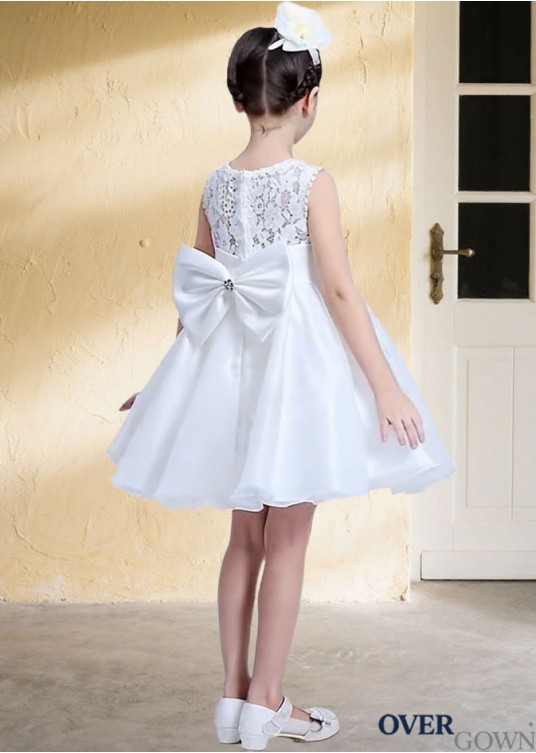 Mini Ball Gown Occasion Dress in White Organza Lace for Flower Girls