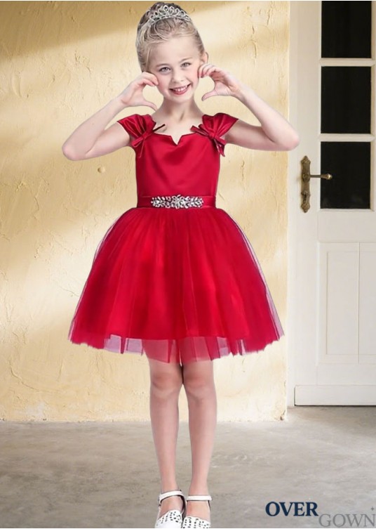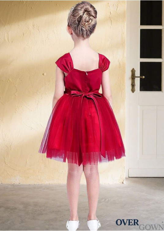 Short Mini Red Tulle Ball Gown Flower Girl Dress with 110cm Length - Princess Silhouette