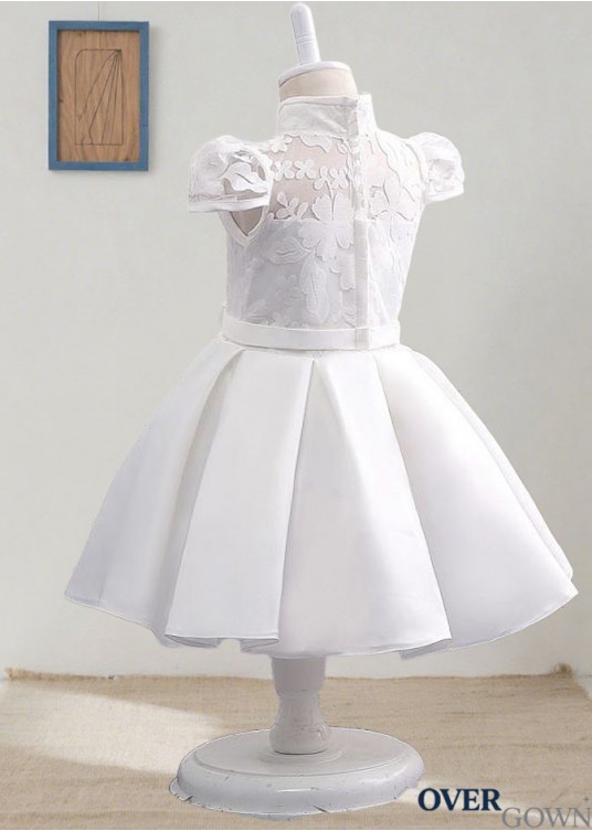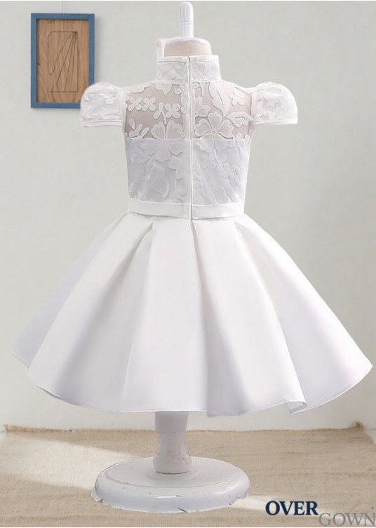 White Lace & Satin Ball Gown Flower Girl Dresses Ankle Length