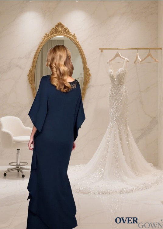 Full Length Scoop Neck Chiffon Mother of the Bride Dress Sheath Column Gown