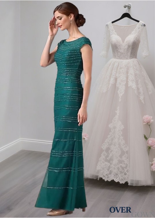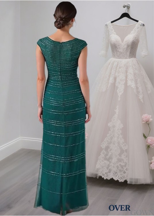Green Tulle Mother of the Bride Dress – Full Length Sheath Gown with Cap Sleeves