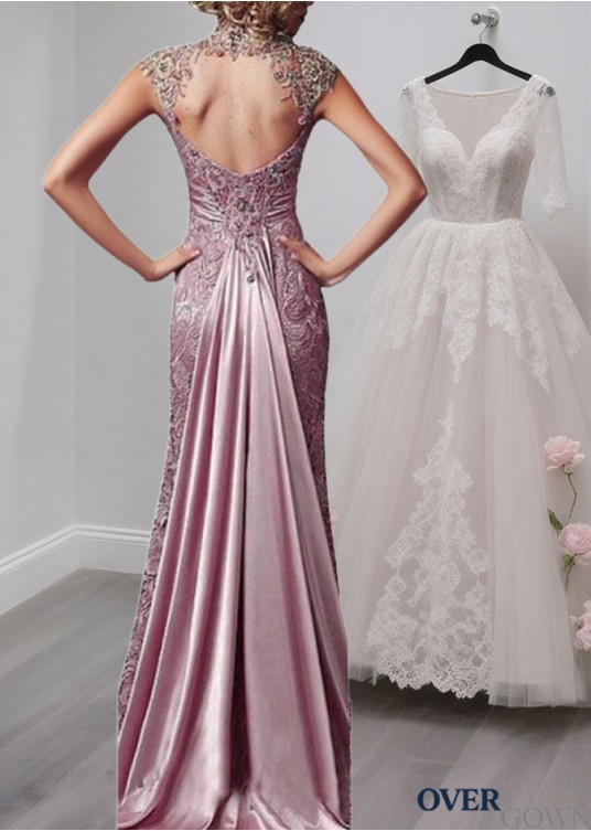Lace High Collar Formal Dress – Sheath/Column Gown for Special Occasions