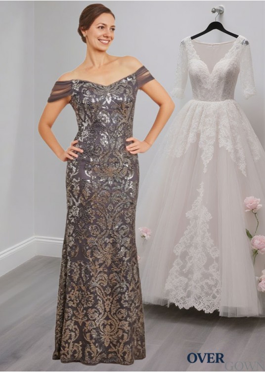 Lace Mother of the Bride Dress with Sequins and Beads – Floor Length Gown