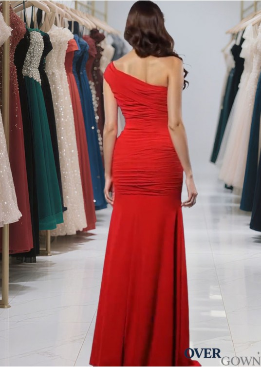 Elegant One-Shoulder Chiffon Sexy Evening Dress with Pleated Floor-Length Skirt