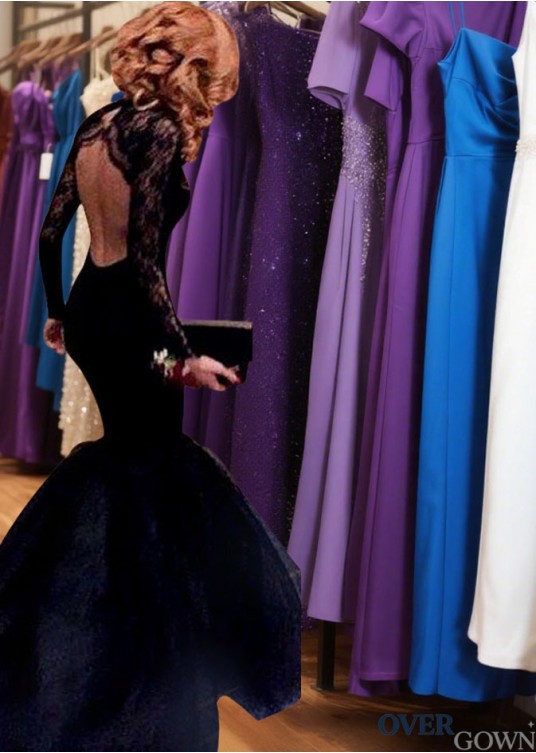 Sexy Lace Mermaid Evening Dress with Long Sleeves and Scoop Neckline