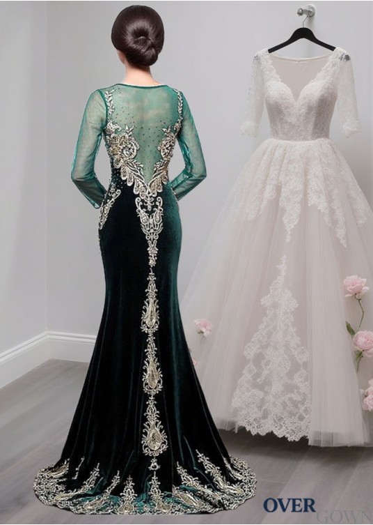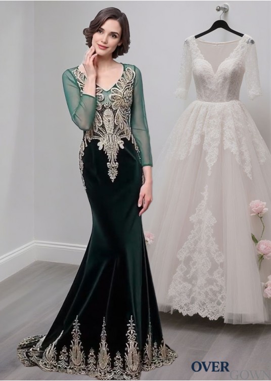 Tulle V-Neck Mother of the Bride Dress – Formal Gowns with Long Sleeves