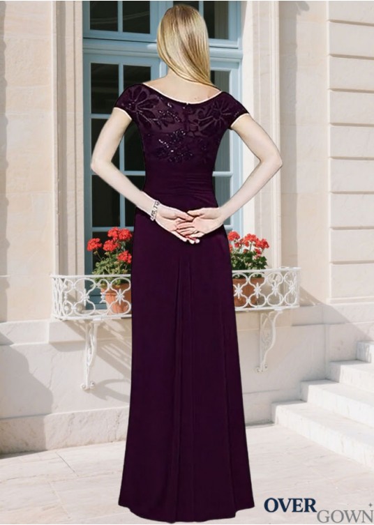 Full Length Chiffon Sheath Mother of the Bride Gown Cap Sleeve