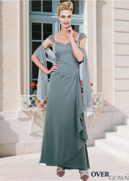 Full Length Chiffon Mother of the Bride Gown Sweetheart Cap Sleeves