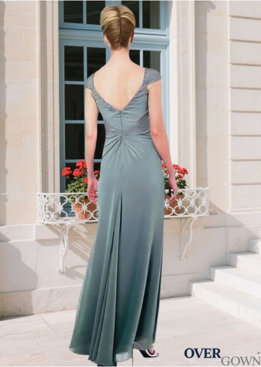Full Length Sheath Mother of the Bride Dress Chiffon V-Neck