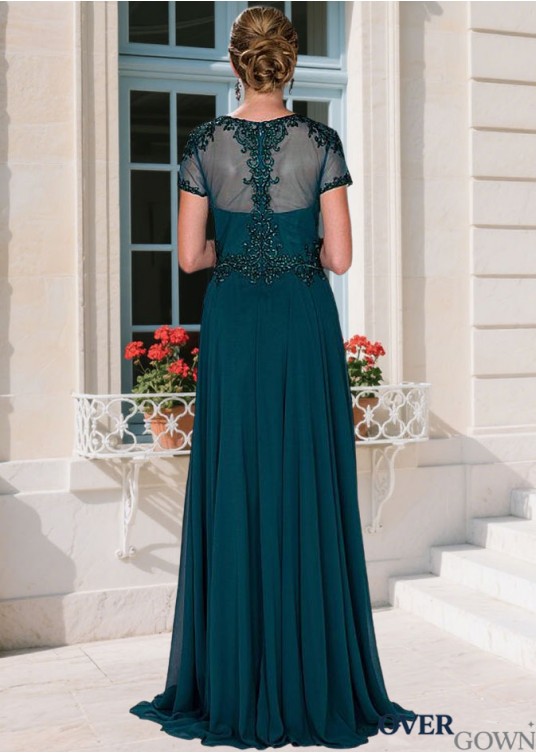 Full Length Mother of the Bride Gown Jewel Illusion A-Line