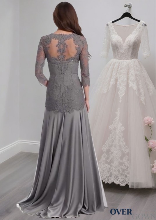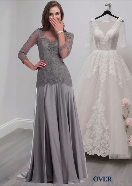 Gray A-Line Mother of the Bride Dress in Silk-Like Chiffon For Sale