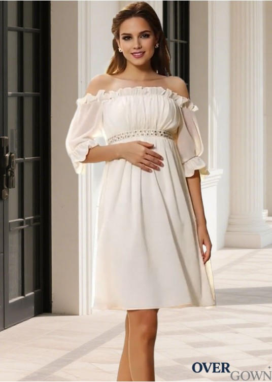 Half Sleeve A-Line Beaded Chiffon Bridal Dress