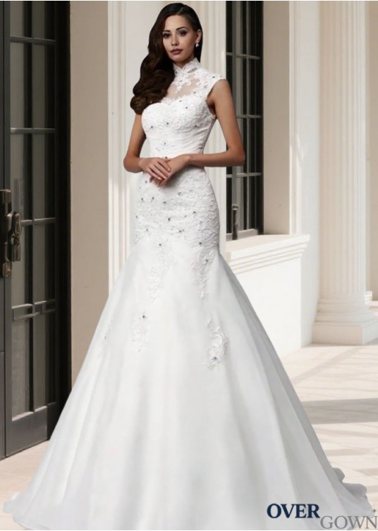 High Neck Beaded Mermaid Wedding Dress