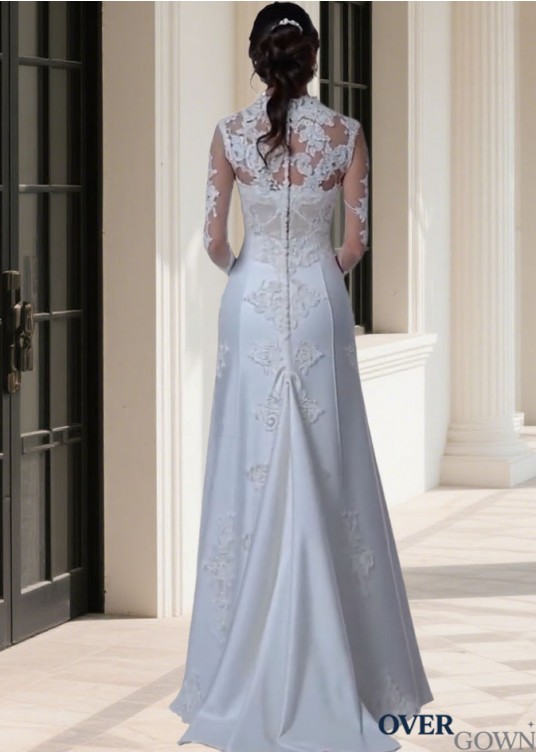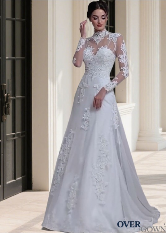 High Neck Long Sleeve Tulle A-Line Wedding Dress & Bridal Gowns