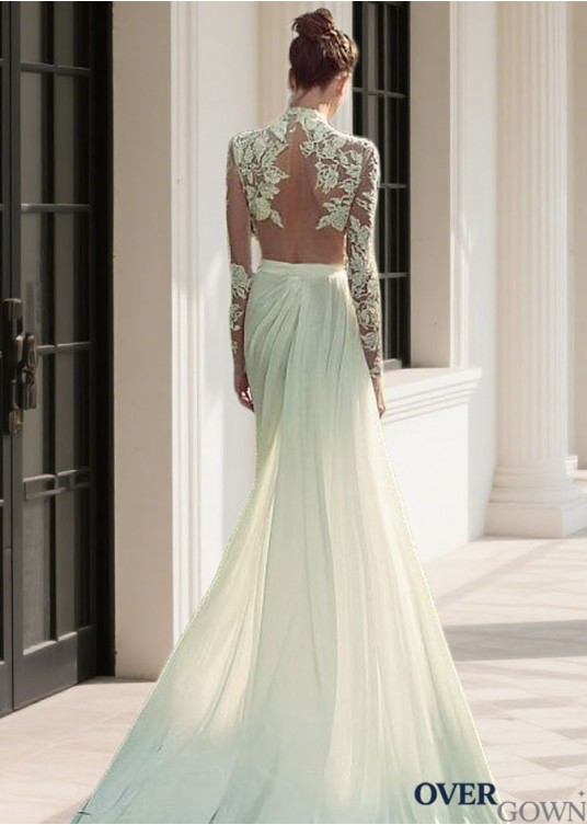 Illusion Long Sleeve Sheath Beach Bridal Gown
