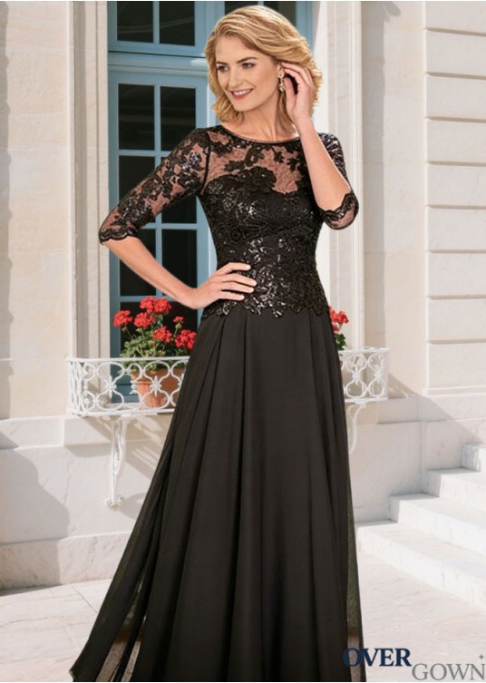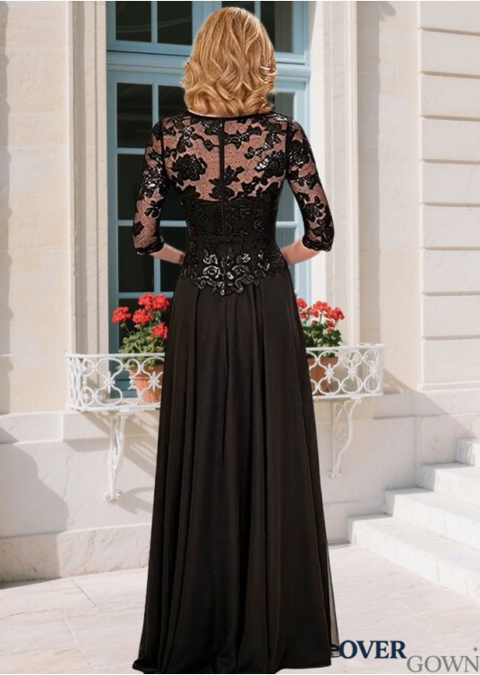 Illusion Sleeve A-line Full Length Mother Dress