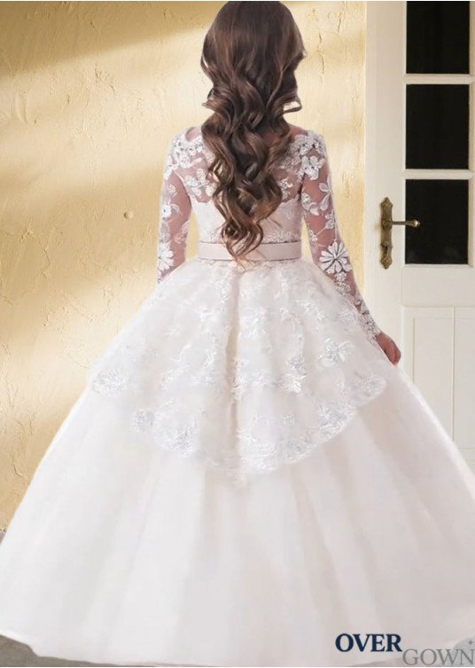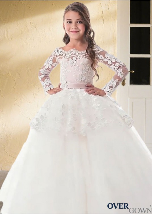 Ivory White Ball Gown Flower Girl Dress with Lace and Tulle