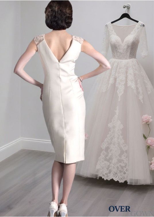 Short Satin Mother of the Bride Dresses with Jewel Neckline
