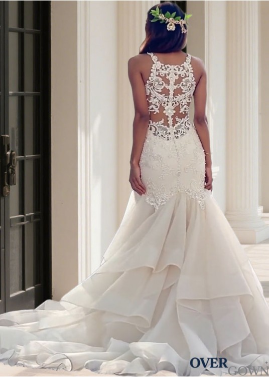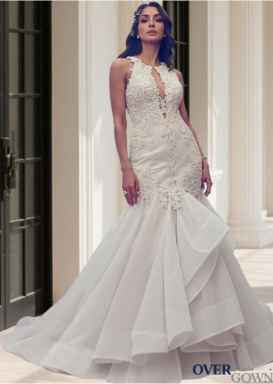 Jewel Neck Tulle and Organza Mermaid Ball Gown Wedding Dress