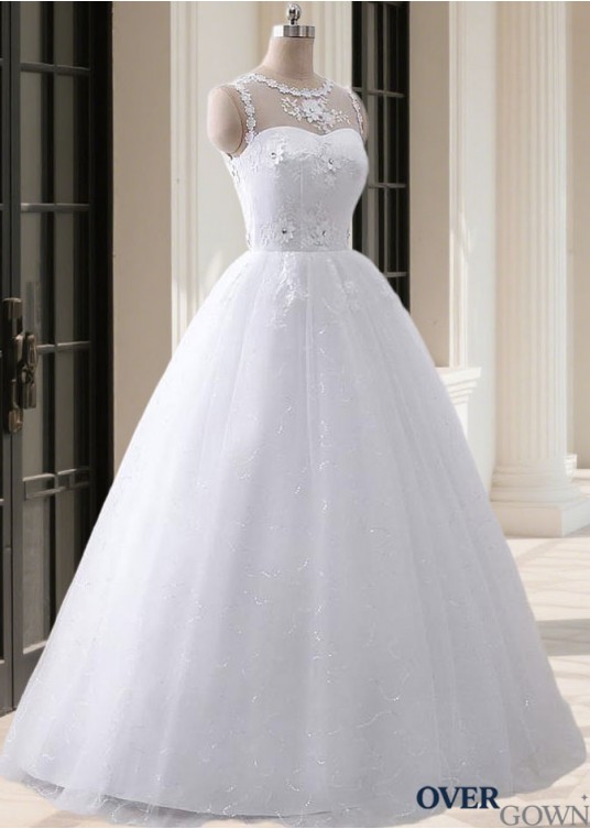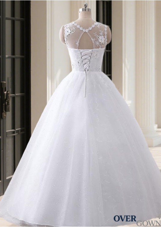 Jewel Neck Tulle Wedding Dress – Sleeveless Simple Bridal Gown