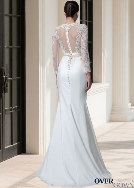 Jewel Neckline Satin Mermaid Wedding Dress with Lace Long Sleeves