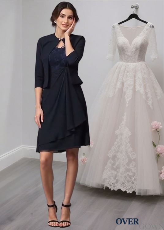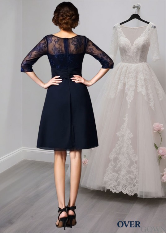 Knee-Length A-Line Dress with Lace and Half Sleeves for Special Occasion