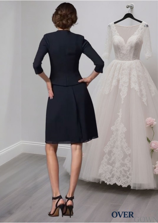 Satin Knee-Length Mother of the Bride Dress with Short Sleeves