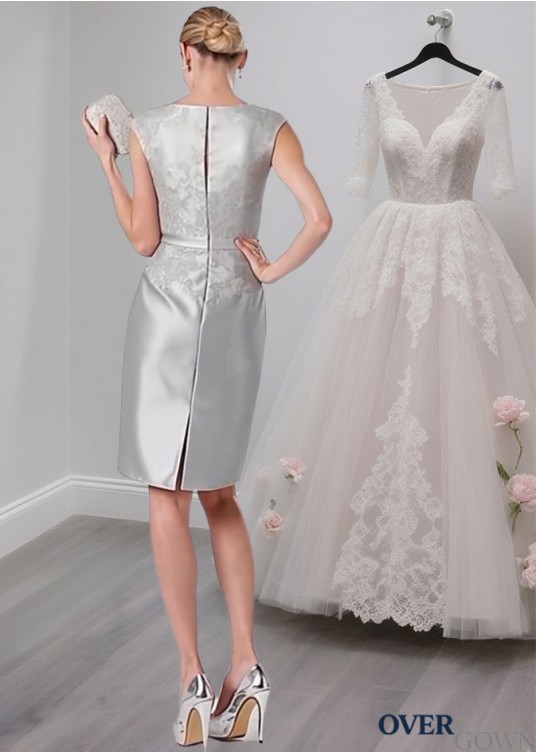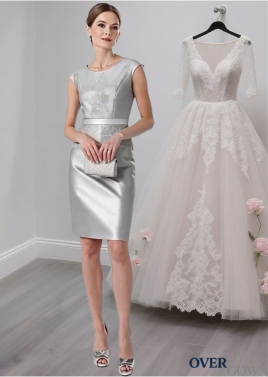 Short Jewel Neck Satin Knee Length Mother of the Bride Dresses