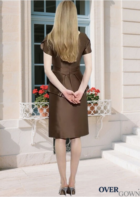 Knee-Length T-Shirt Sleeve Chocolate Mother of the Bride Gown