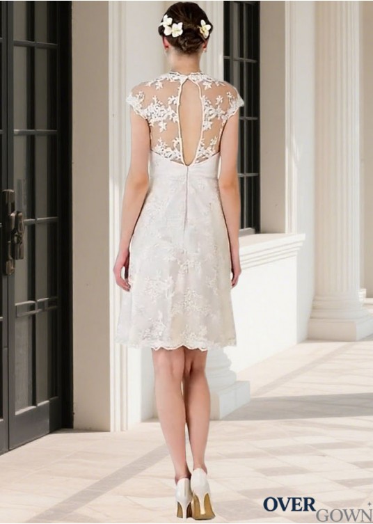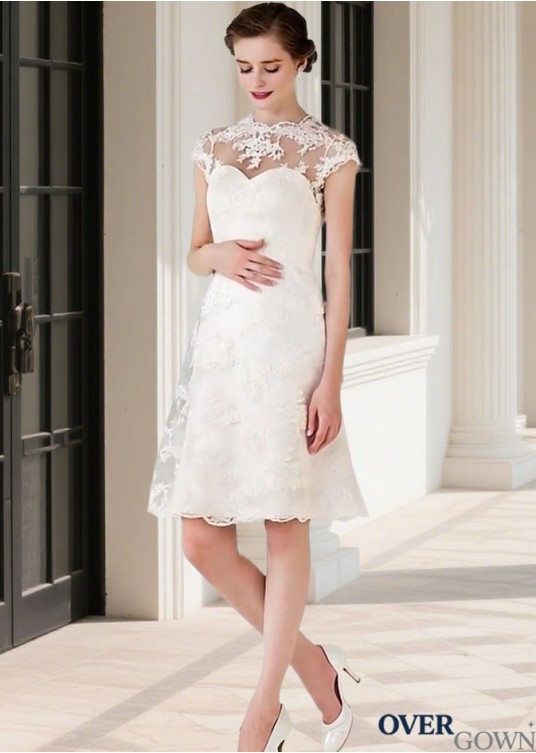 Knee-Length Jewel Neck Tulle Bridal Dress