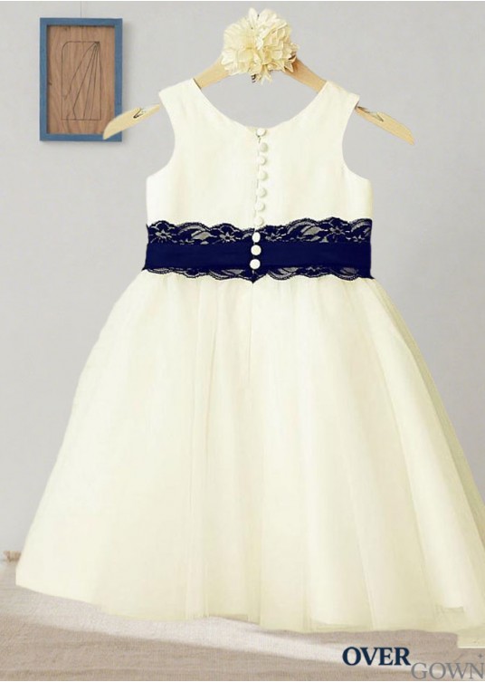 Simple White Lace Satin Flower Girl Dress Knee Length