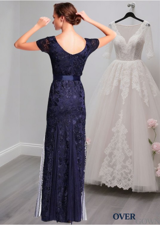 Lace Mother of the Bride Dress with Short Sleeves and Bateau Neckline