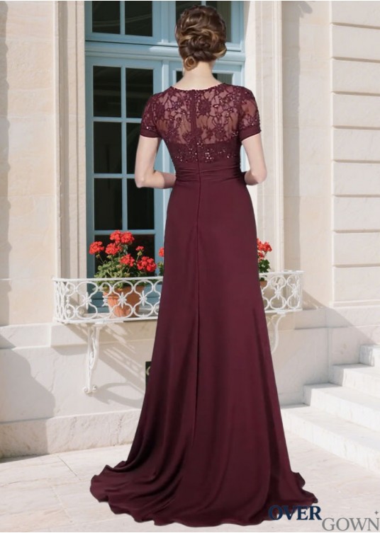 V-Neck Mother of the Bride Dresses – A Line Gowns with Short Sleeves