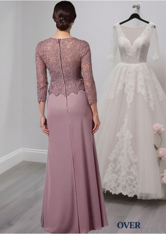 Elegant Lace and Satin Chiffon V-Neck Full-Length Mother of the Bride Dress – Sheath Silhouette