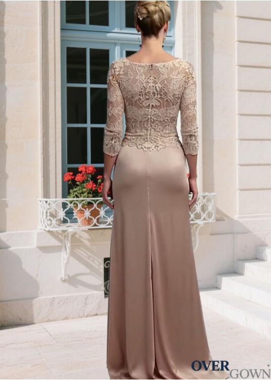Elegant Lace & Satin Chiffon Mother of the Bride Dress – V-Neck Sheath Gown with Illusion Sleeves, Full Length