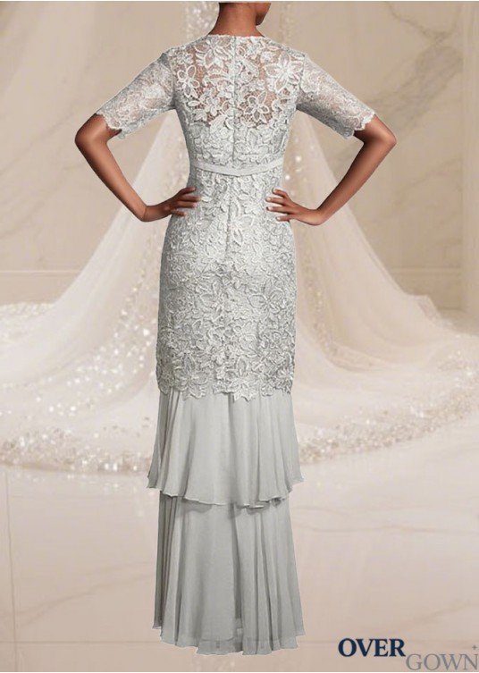 Lace & Silk-Like Chiffon V-Neck Illusion Sleeve Full-Length Formal Dress for Women