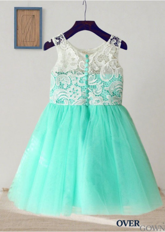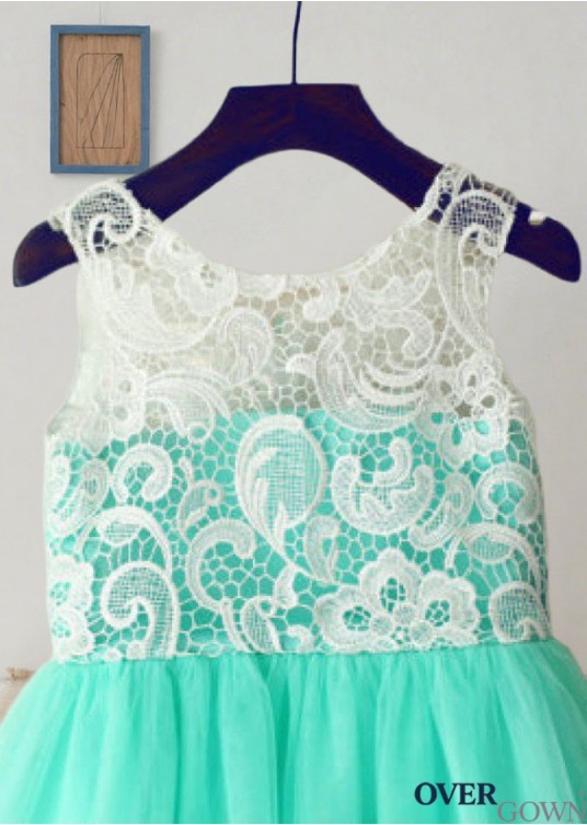 Scoop Neck Long Tulle Flower Girl Dress Lace Applique