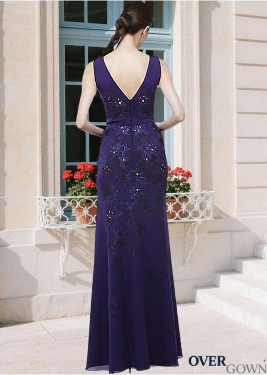 Full Length Purple Sheath Mother of the Bride Gown Chiffon Bateau