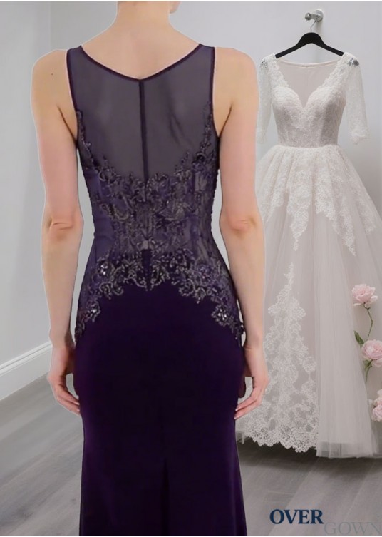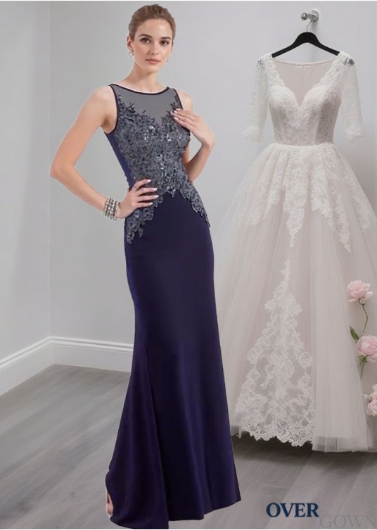 Elegant Bateau Neck Tulle & Satin Full-Length Mother of the Bride Dress