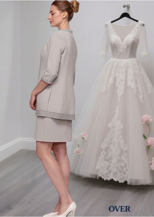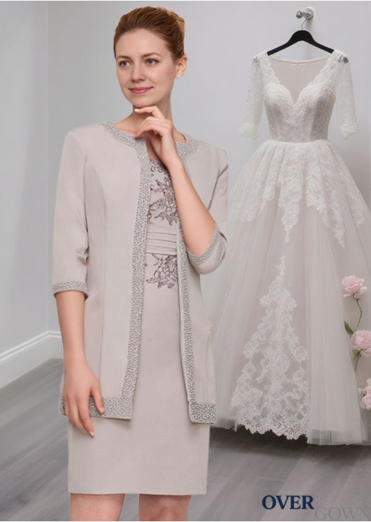Elegant Satin Mother of the Bride Dress with Jacket and Applique