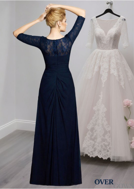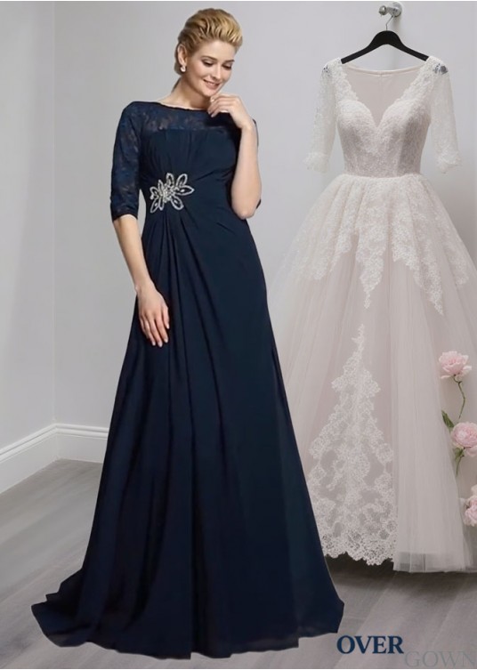 Chiffon Mother of the Bride Dress – Scoop Neck A-Line Gown with 1/2 Sleeves