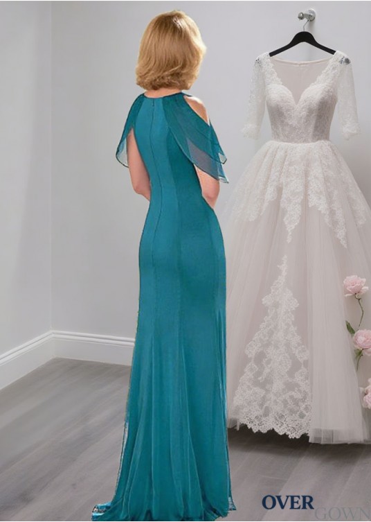 Elegant Blue Full-Length Jewel Neck Silk-Like Chiffon Mother of the Bride Dress