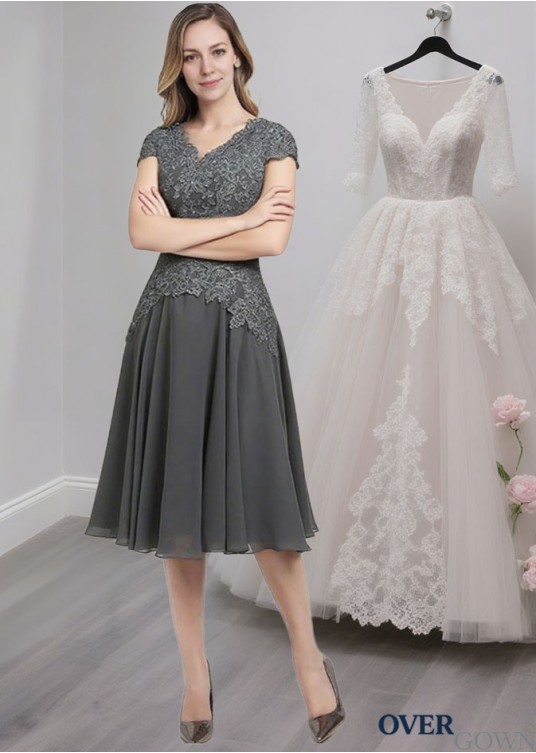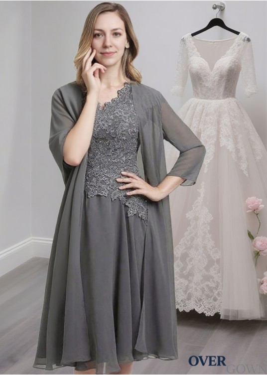 A-Line Chiffon Mother of the Bride Dress with V Neck, Short Sleeves & Jacket